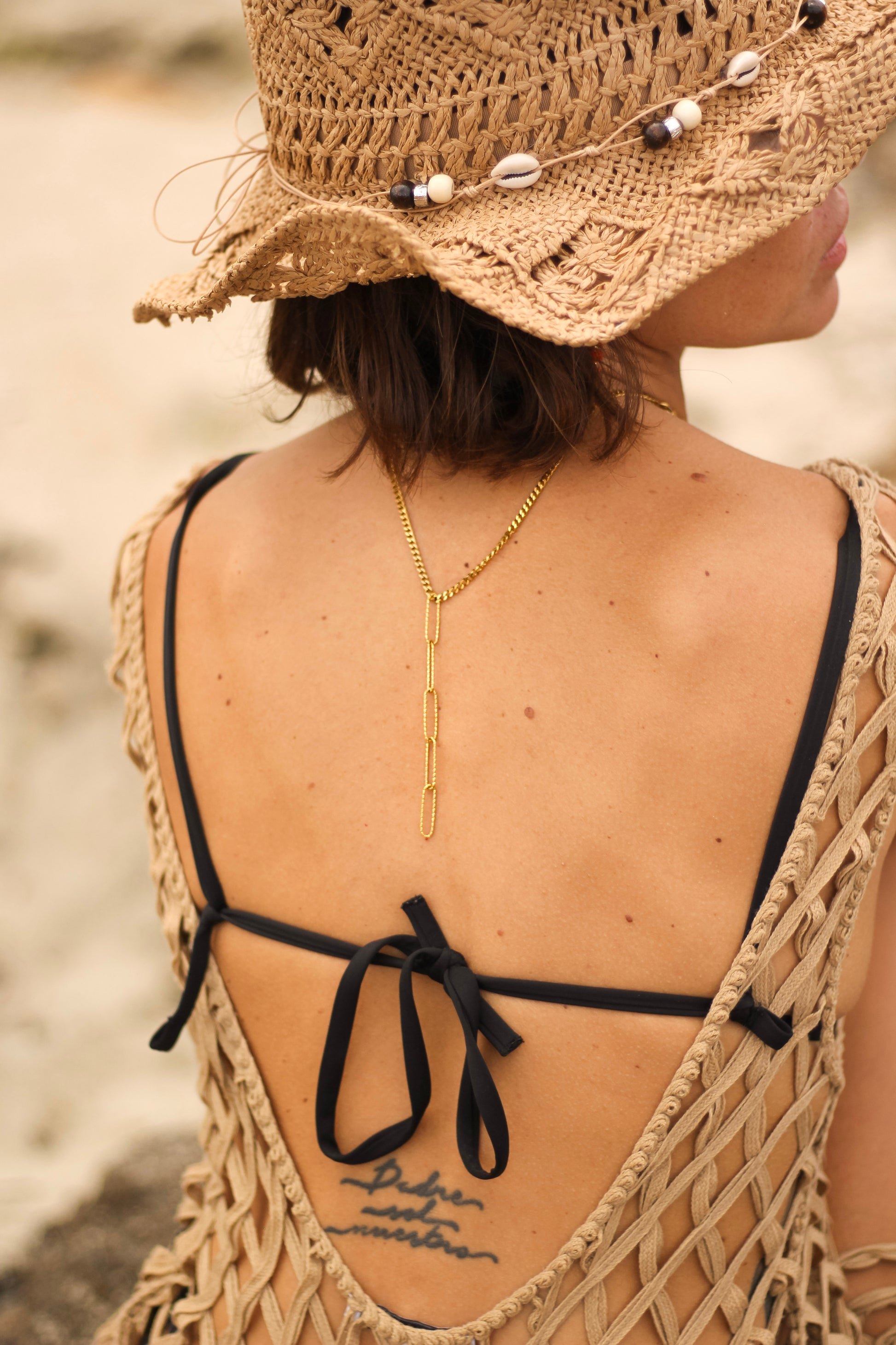 Collar de acero inoxidable chapado en oro 18kt con charm de 5 eslabones facetados.
