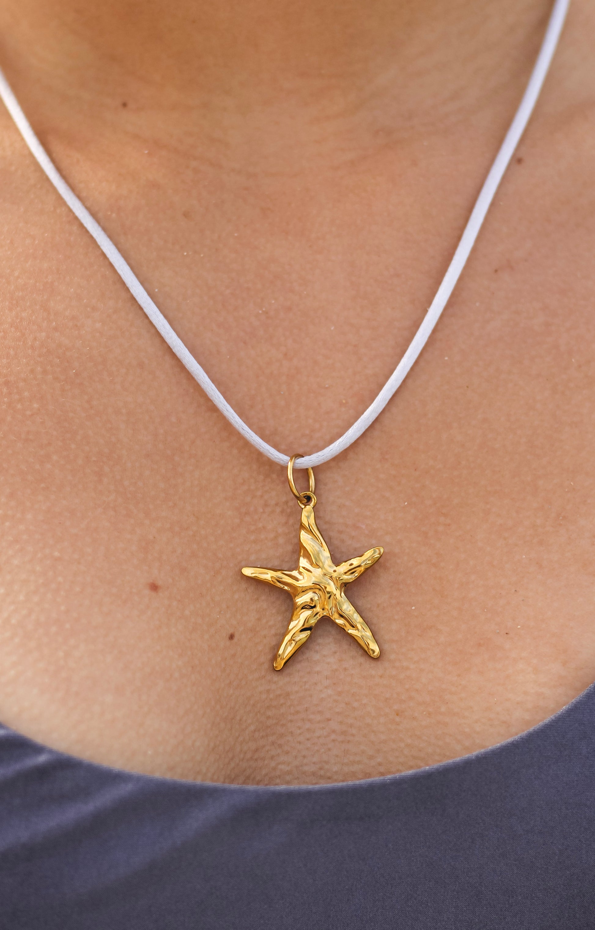 Collar de hilo de seda con terminaciones y charm de acero inoxidable chapado en oro 18kt.